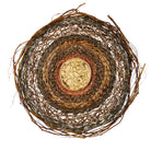 Weaving is a grounding practice that supports my mental wellbeing. I created this woven work on a discarded fan guard, using plant fibres gathered from my garden and the surrounding bushland, with a hand-crafted ceramic centre. The circular form reflects cycles of growth, nurture, harvest, and creation.' Fragile yet Strong' speaks to the quiet power of repair - showing how healing, connection, and beauty can emerge both from nature and from what was once discarded.